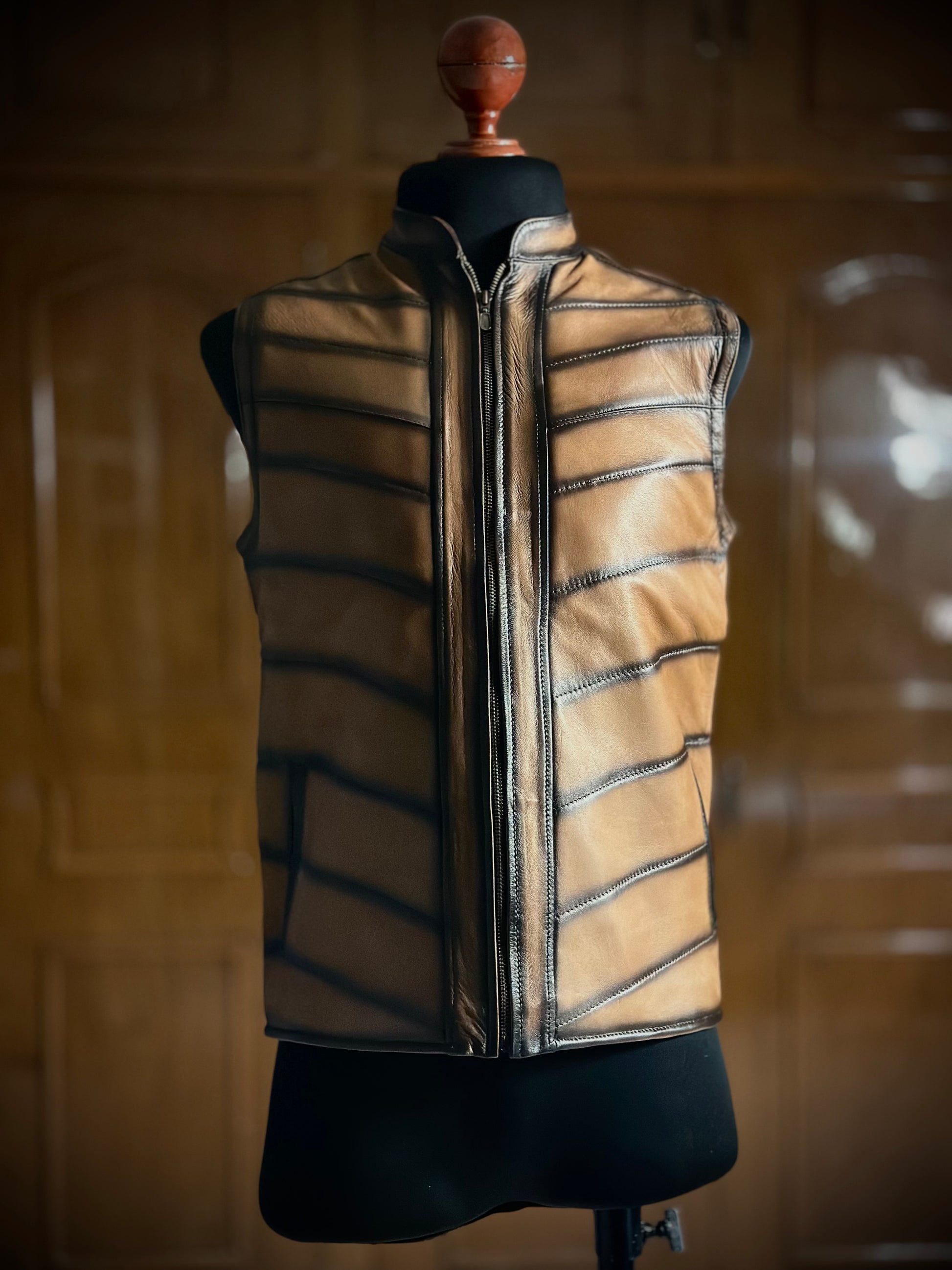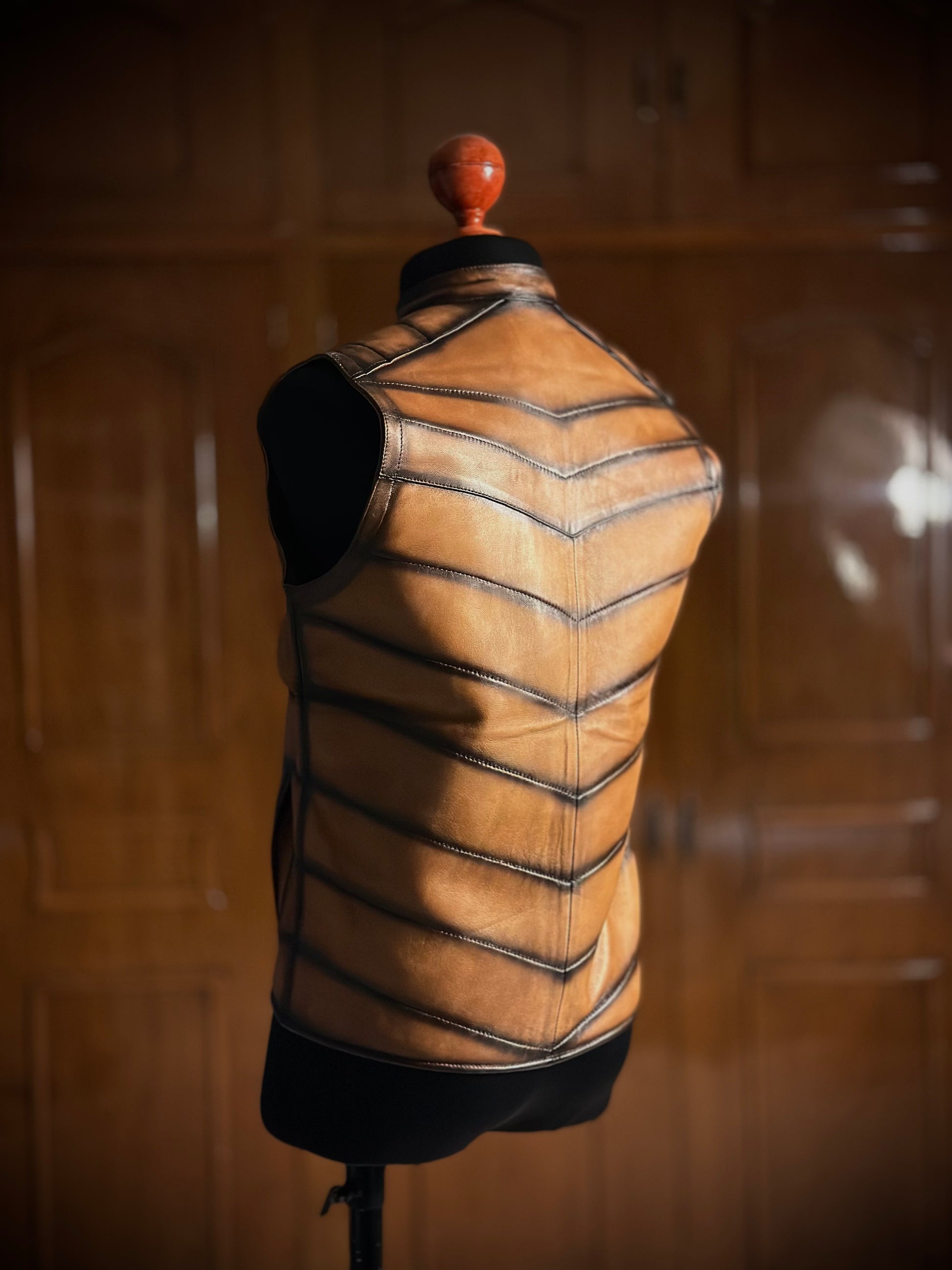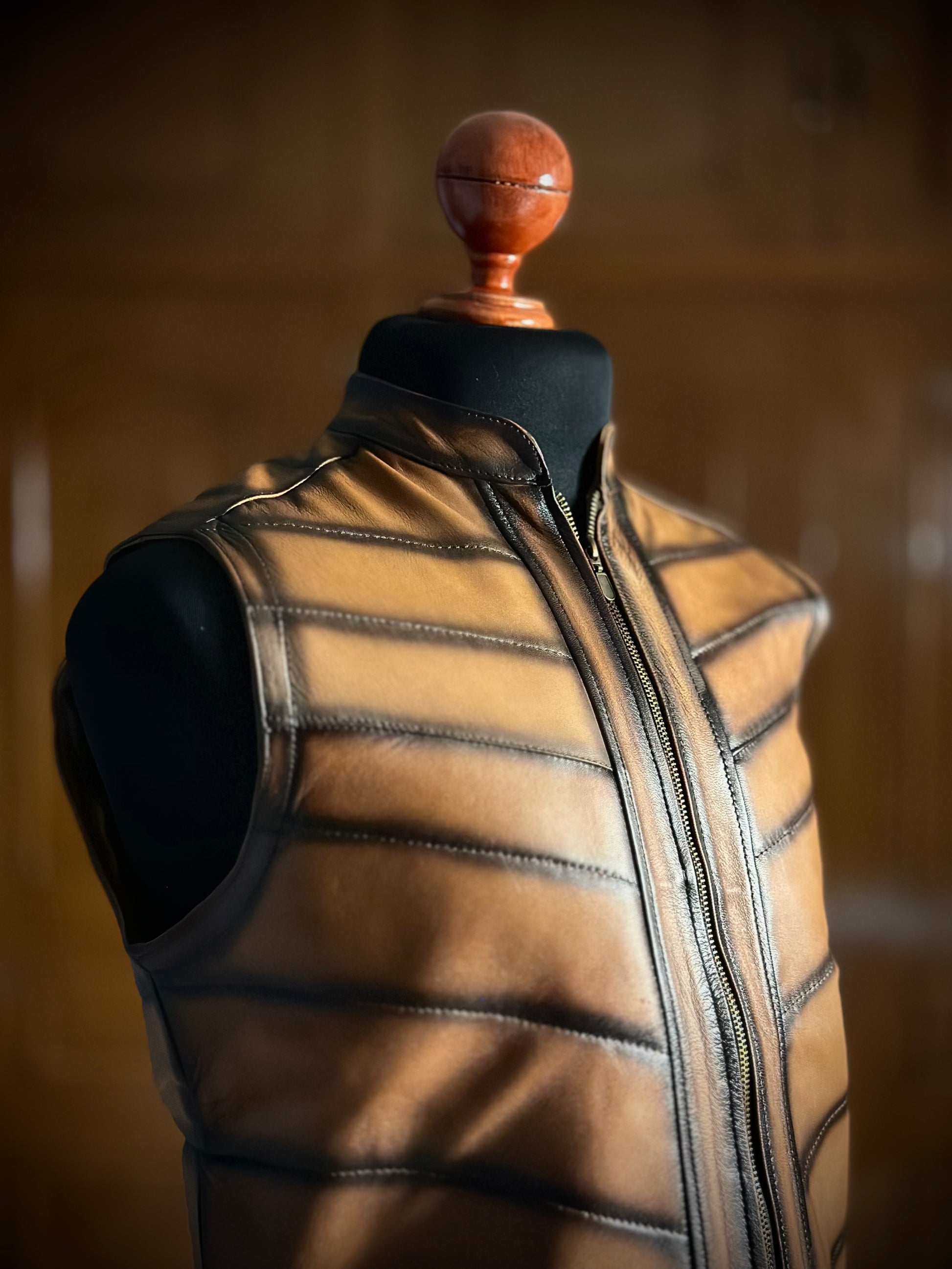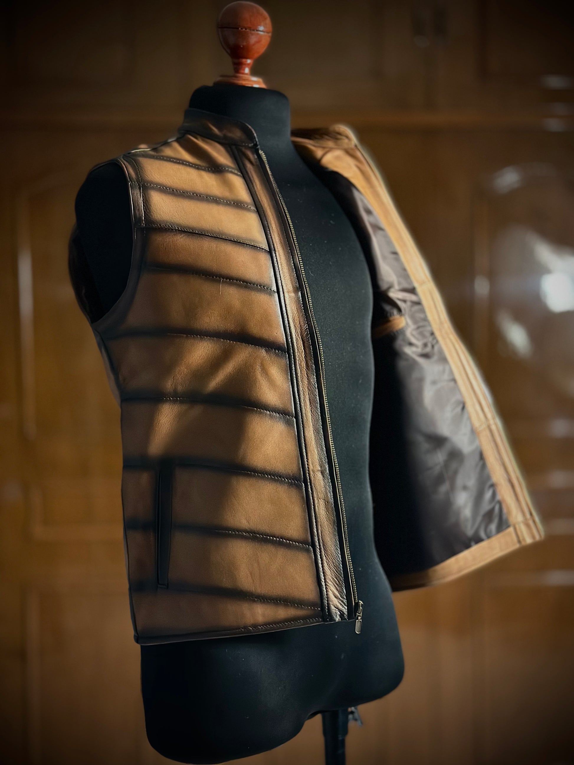 ¡Descubre el chaleco Carlos de piel en color miel sombreado! Con su diseño único y sofisticado acabado, esta chamarra añade un toque de estilo audaz a tu guardarropa.