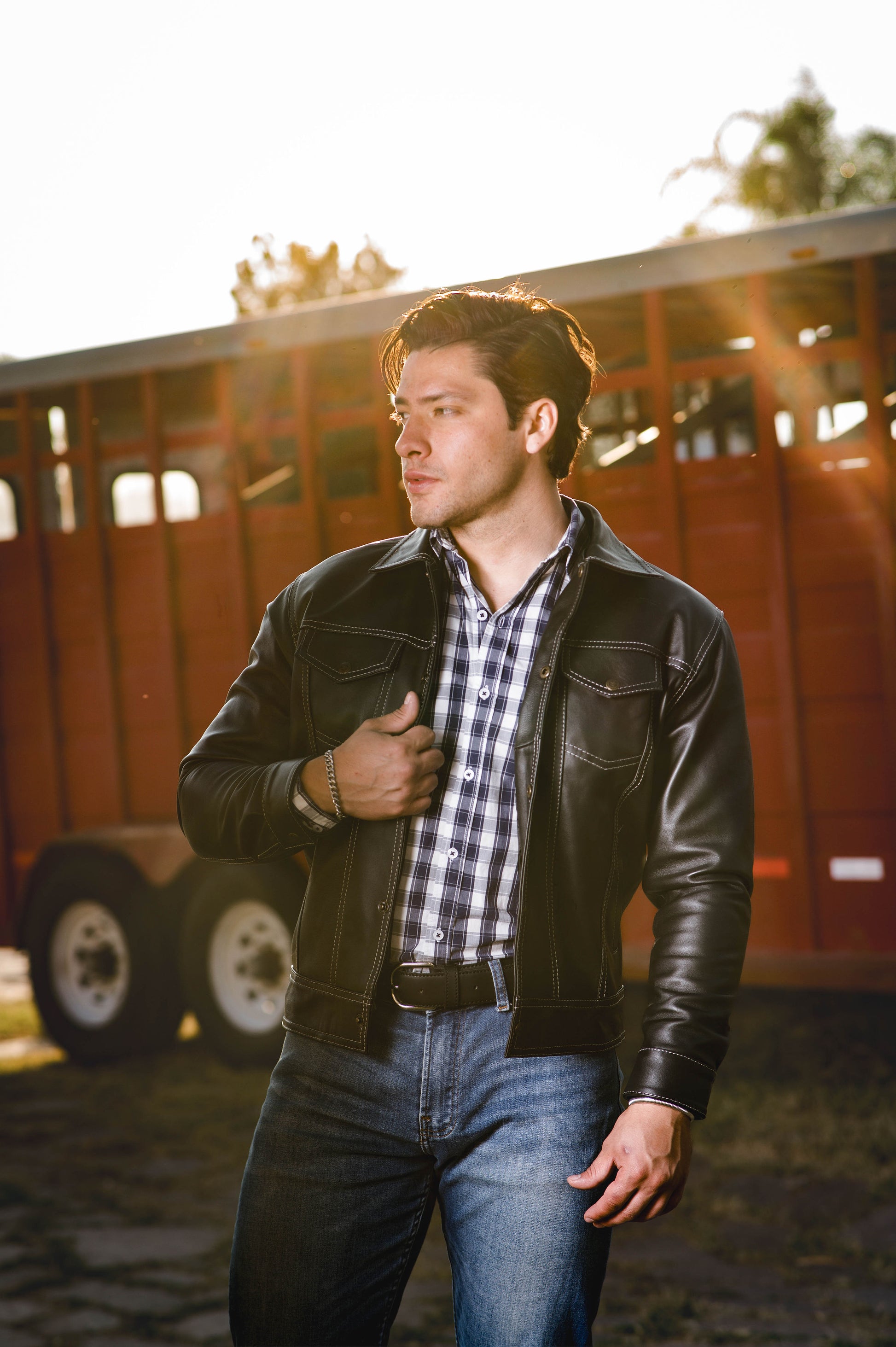 La clásica chamarra de piel para hombre presenta un diseño atemporal con broches y está confeccionada con suave piel de borrego. Destaca por sus costuras blancas que añaden un toque distintivo al estilo tradicional. Esta prenda combina elegancia y comodidad, ofreciendo un aspecto refinado y una sensación de lujo. Perfecta para cualquier ocasión, esta chamarra es una declaración de estilo que nunca pasa de moda.