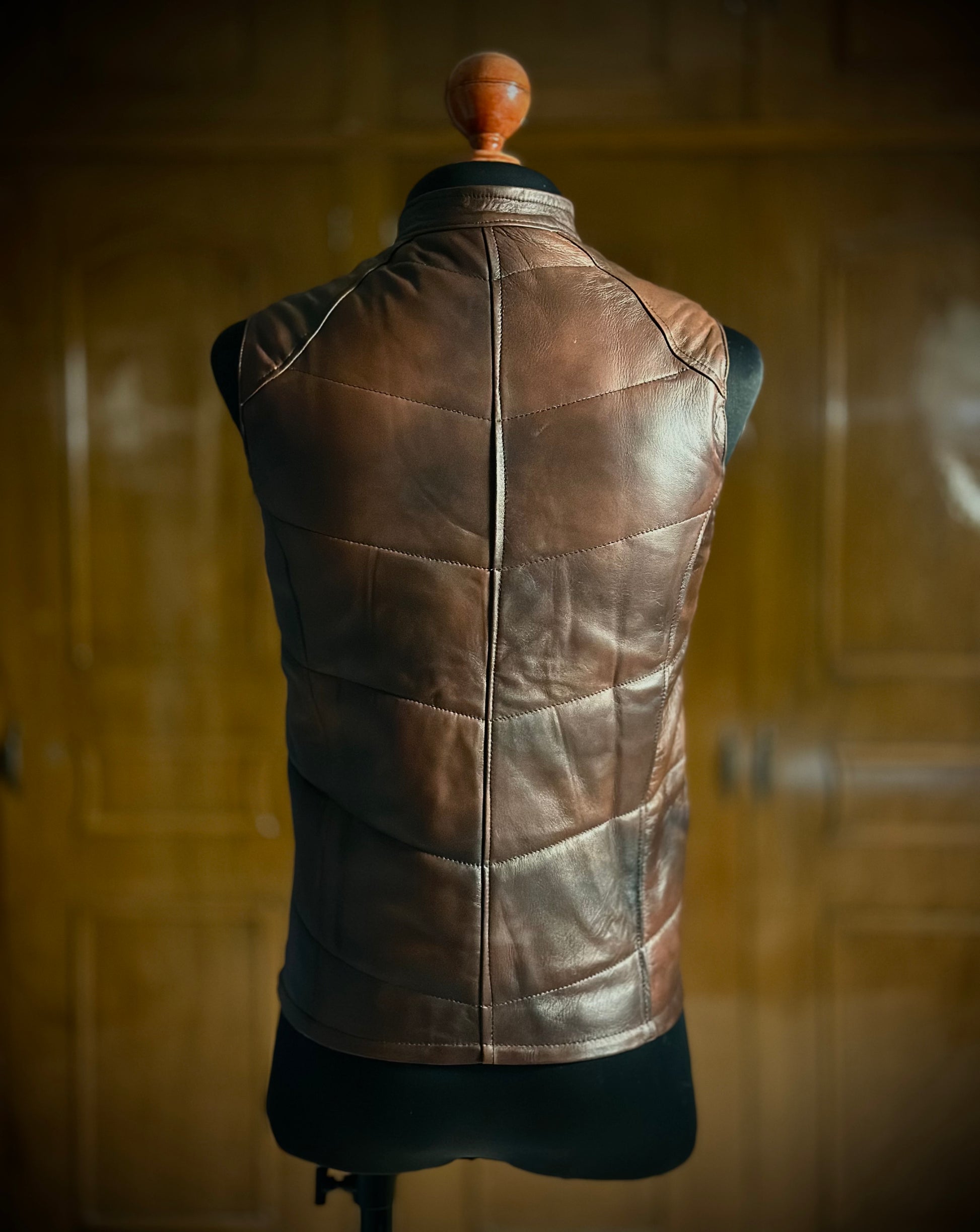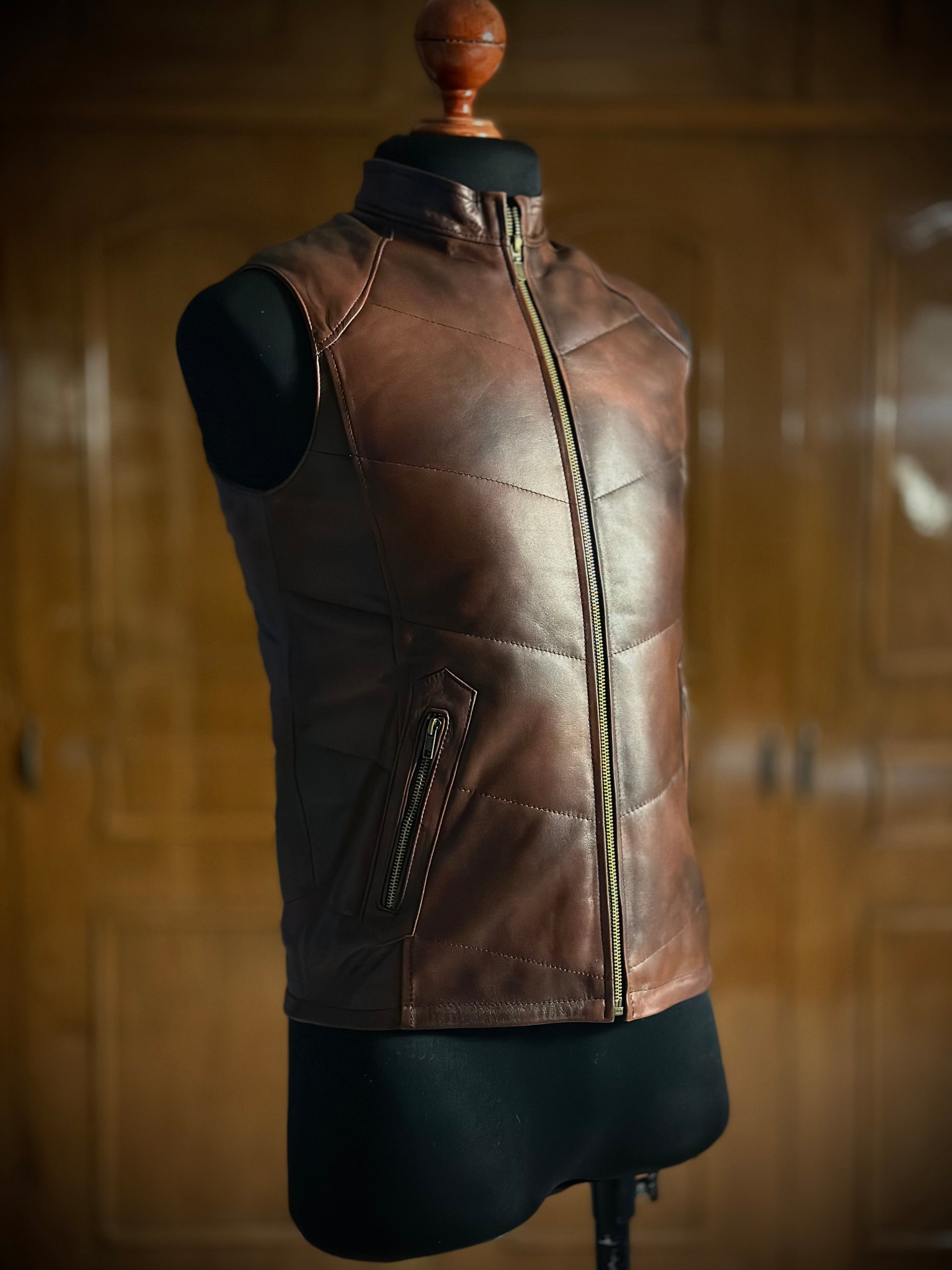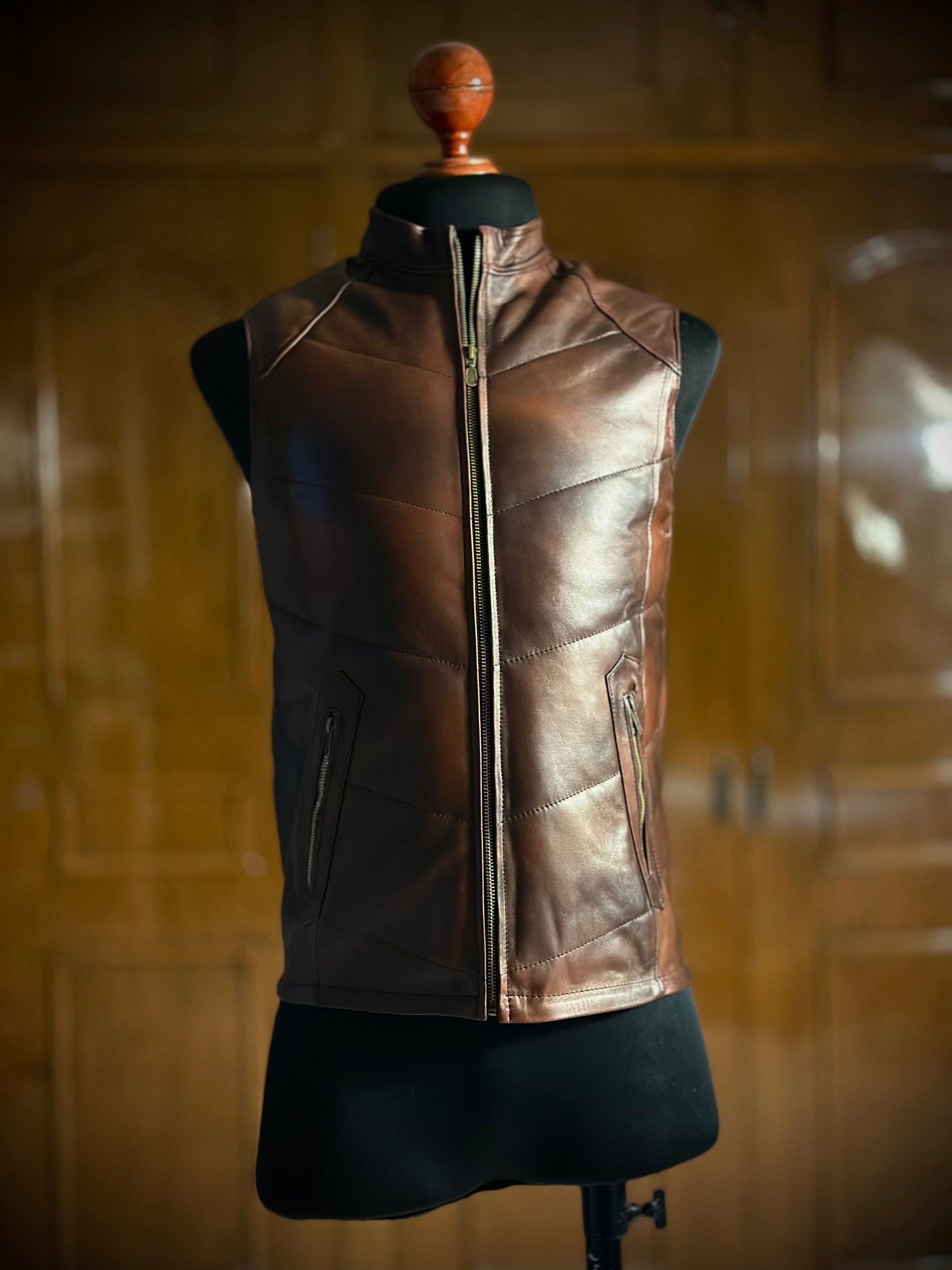 ¡Descubre el chaleco de piel Leonel en color marrón efecto! Con su diseño único y sofisticado acabado, esta chamarra añade un toque de estilo audaz a tu guardarropa.