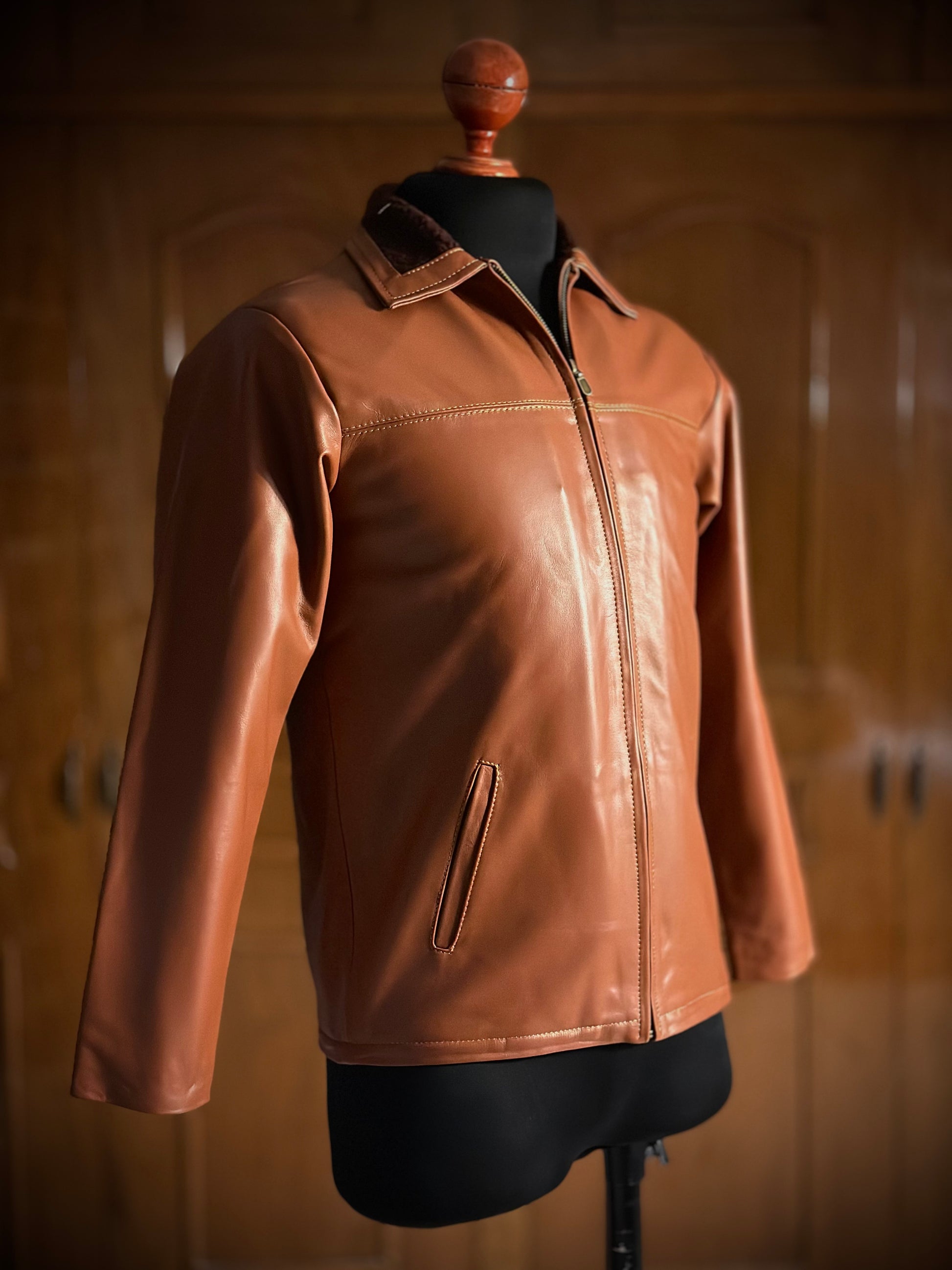 ¡Descubre la chamarra de piel Ruso en color miel! Con su diseño único y sofisticado acabado, esta chamarra añade un toque de estilo audaz a tu guardarropa.