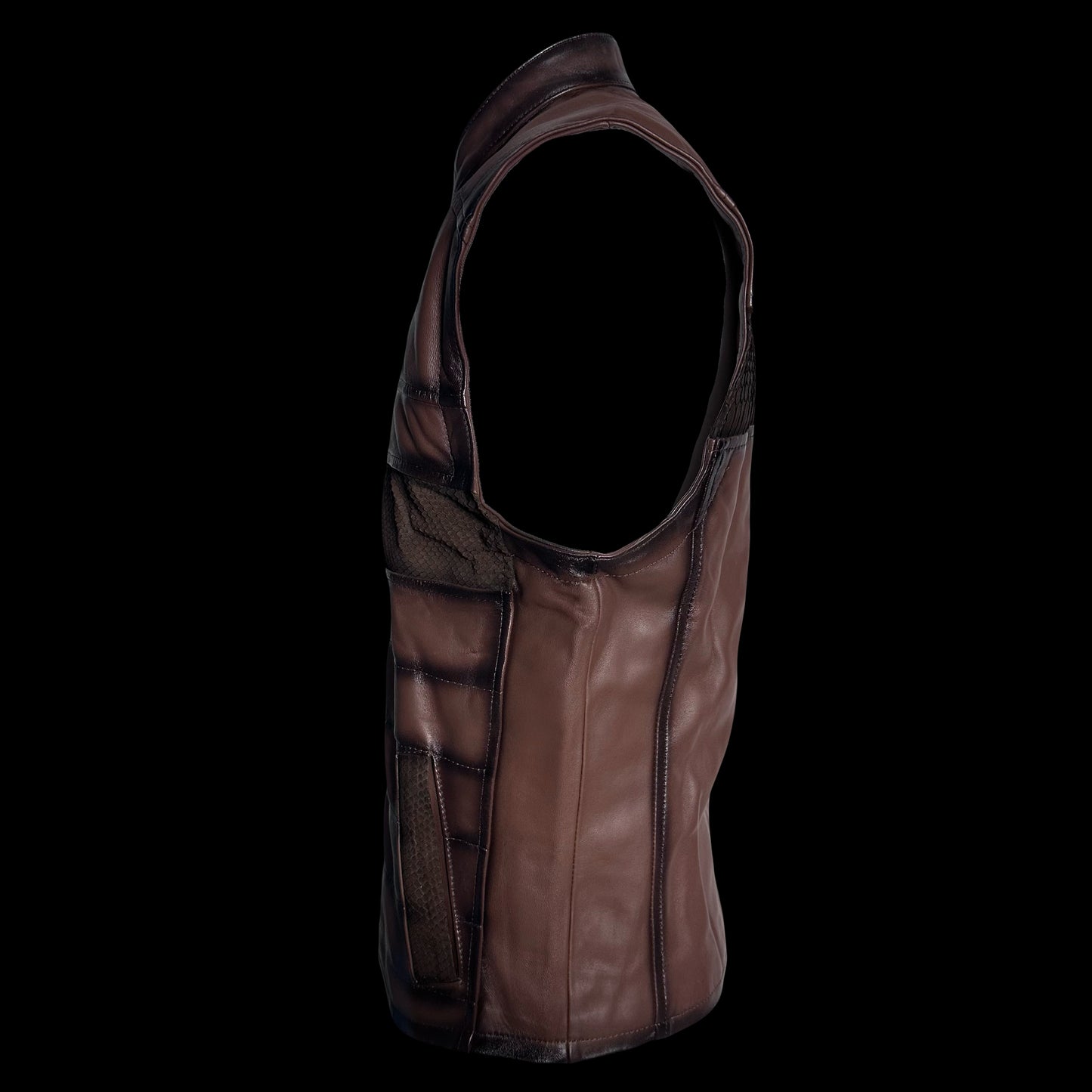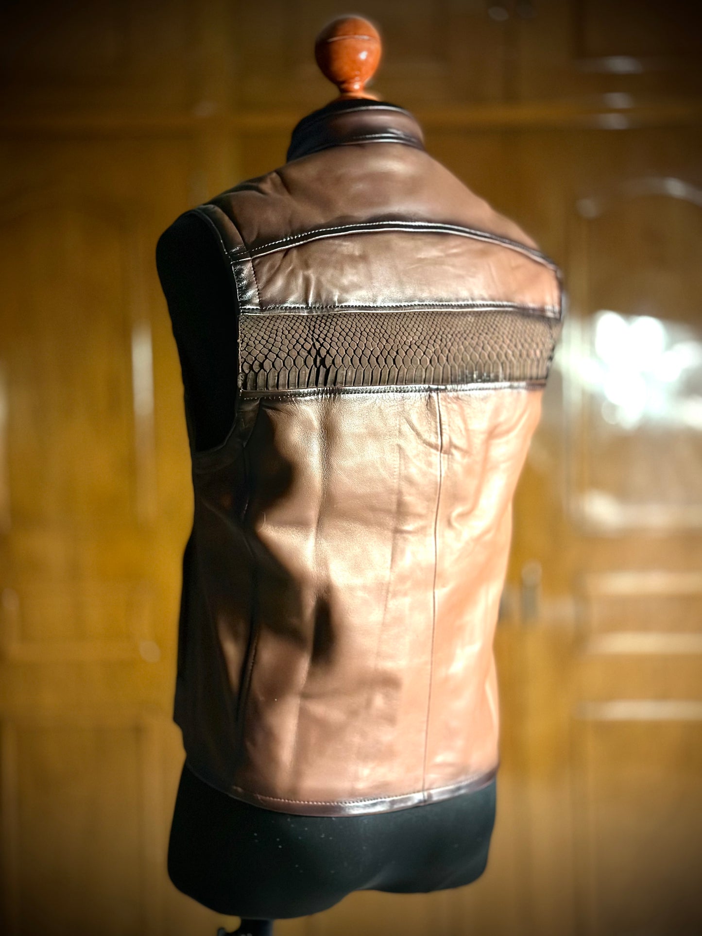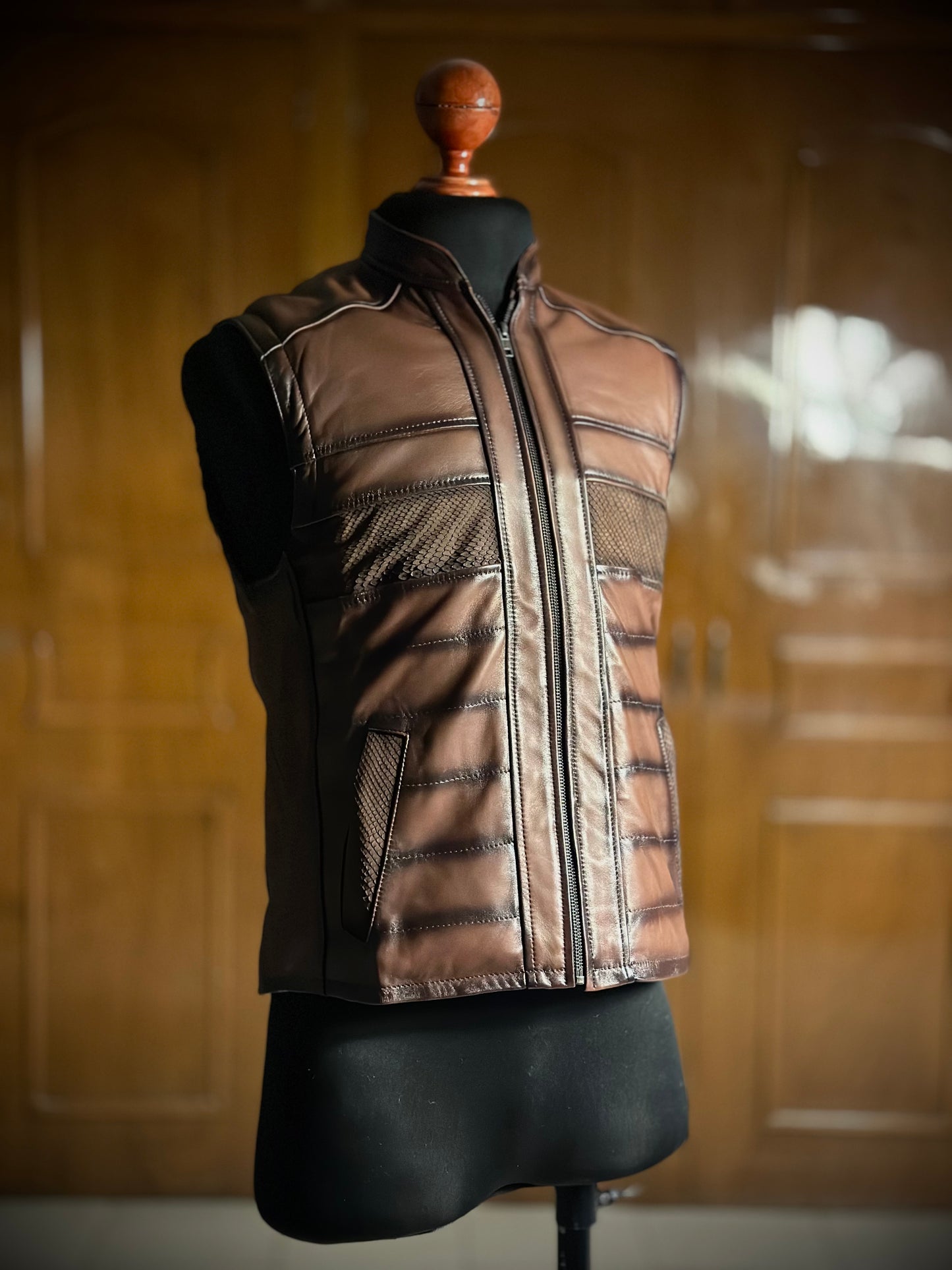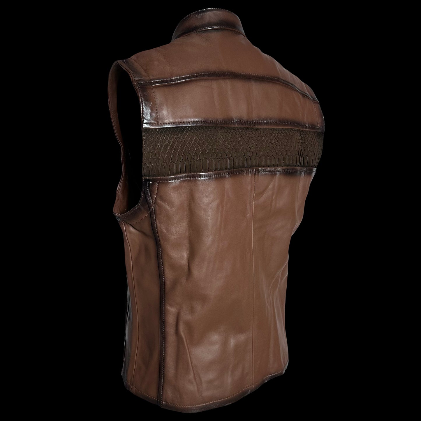 ¡Descubre el chaleco de piel Renato en color marrón! Con su diseño único y sofisticado acabado, esta chamarra añade un toque de estilo audaz a tu guardarropa.