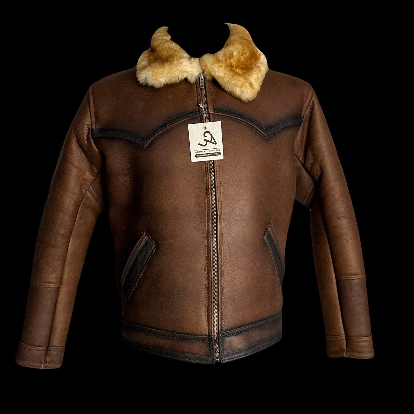 ¡Descubre la chamarra Vaquera de piel en color caramelo! Con su diseño único y sofisticado acabado, esta chamarra añade un toque de estilo audaz a tu guardarropa.